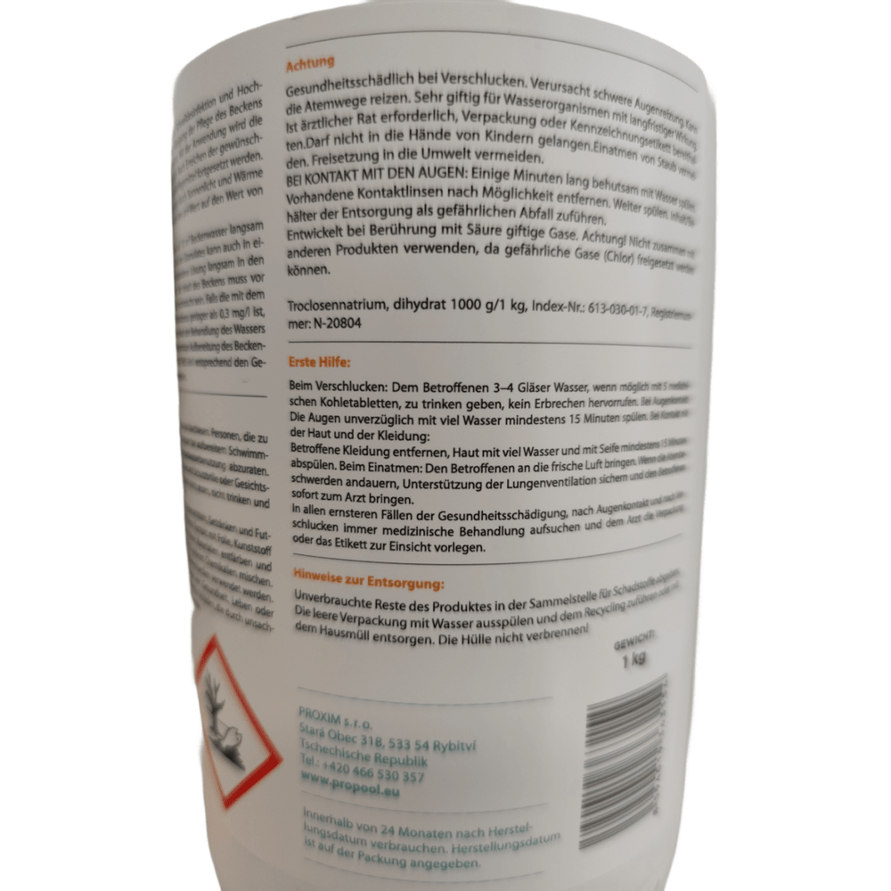 При използване Хлорни гранули Винаги трябва да следвате инструкциите за безопасност на опаковката. Този продукт е предназначен като биоцид и може да причини сериозно дразнене на очите и дихателните пътища, ако се борави неправилно. Той е силно токсичен и за водните организми и има дълготрайни последици, така че контактът с околната среда трябва да се избягва на всяка цена.