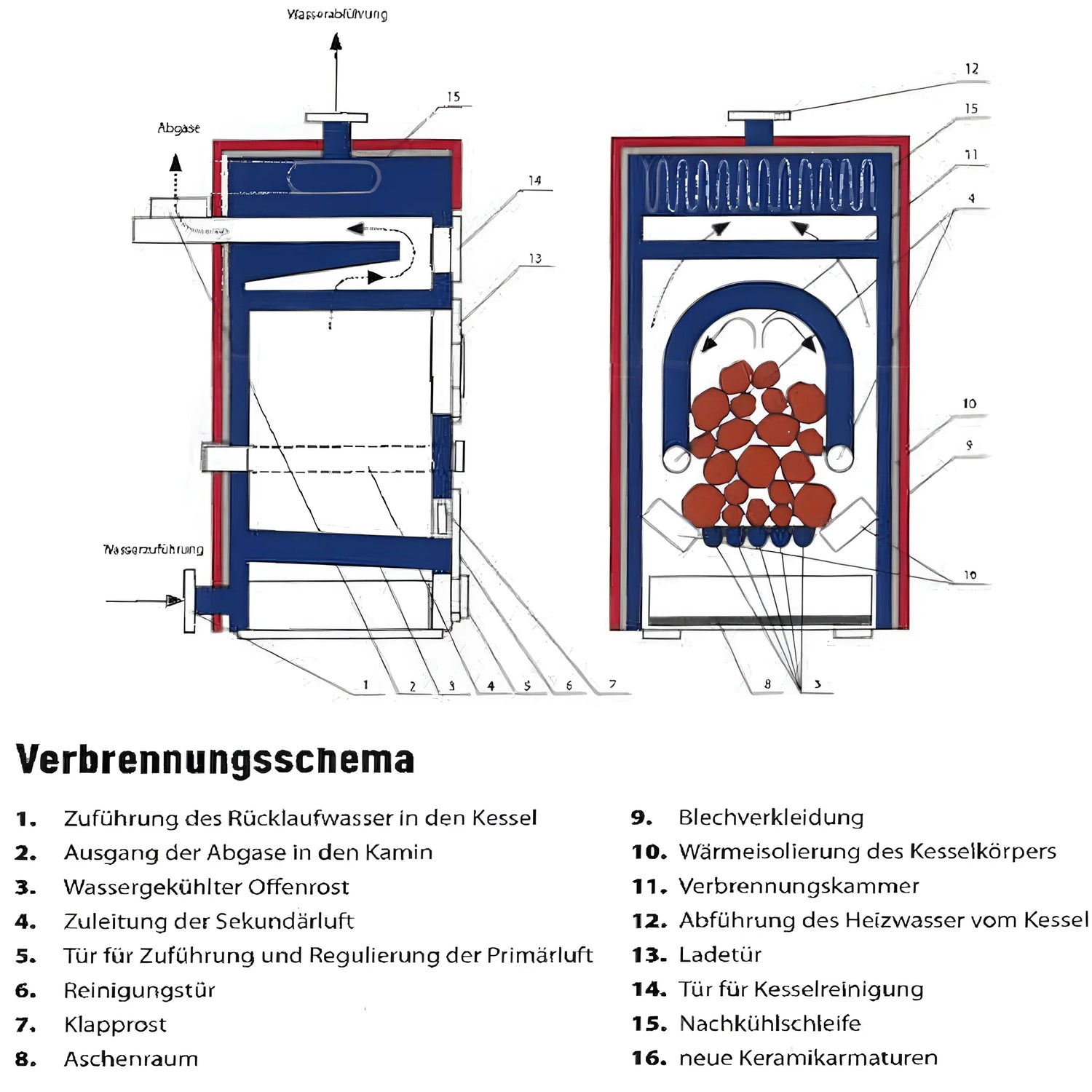 В Изгарянето на горивото води до двойно (двустепенно) горене - газификация и конвенционално горене. Благодарение на комбинацията от двата вида горене, горивото е перфектно Подаването на първичен и вторичен въздух може лесно да се регулира, което гарантира може да се постигне оптимално горене и дълго време на изгаряне на горивото.