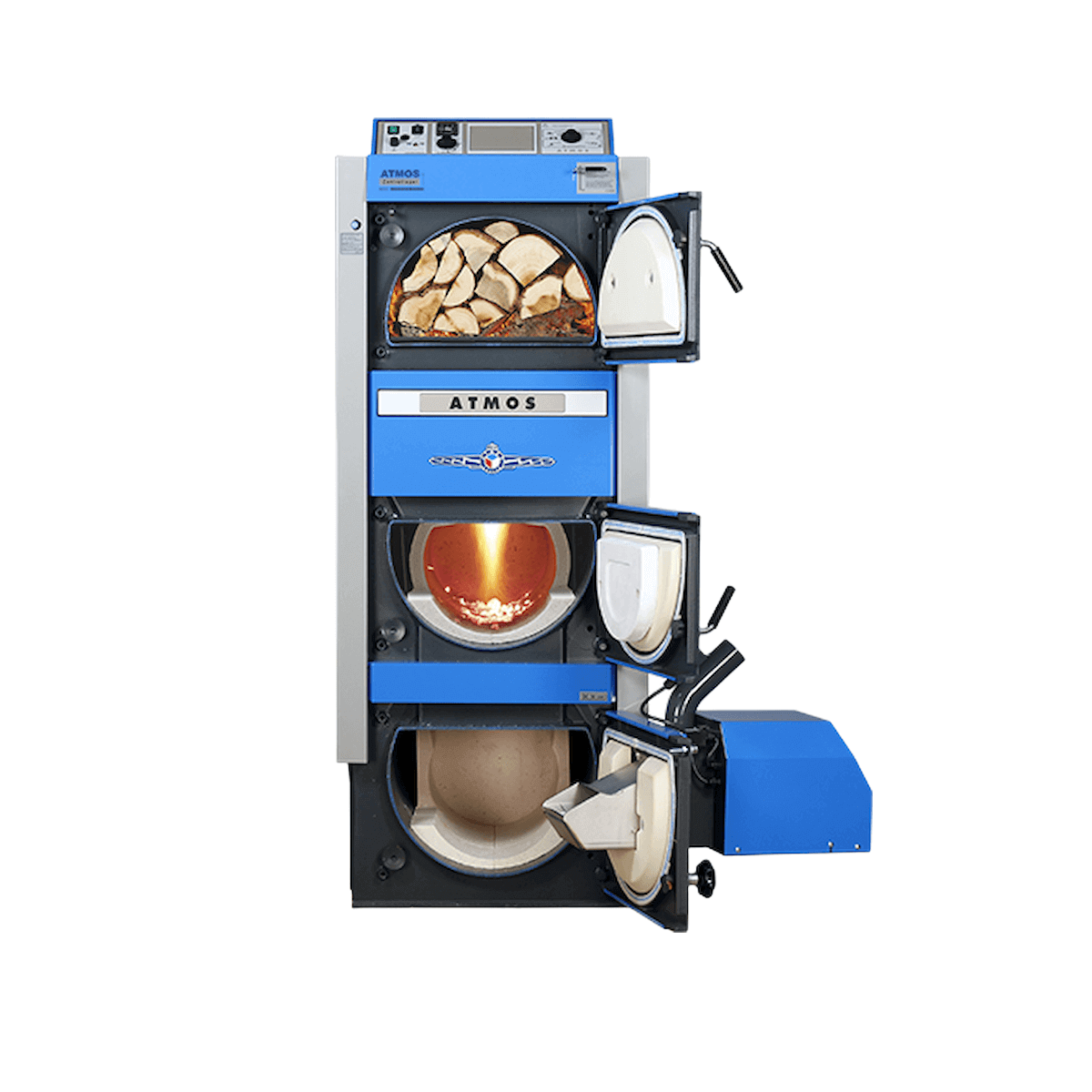 За тези, които искат да се отопляват с дърва евтино, но все пак да се радват на удобството на автоматична отоплителна система, нашите комбинирани котли GSP са идеалното решение. Основно предимство на комбинирания котел ATMOS GSP пред други продукти е, че горивните камери са разположени една над друга, като по този начин изискват минимално пространство. Тази функция за пестене на място направи котлите GSP много търсени и те се утвърдиха трайно след пускането им на пазара през 2012 г.
