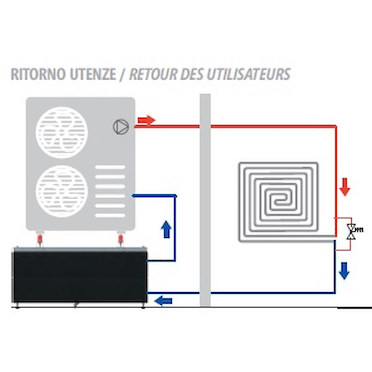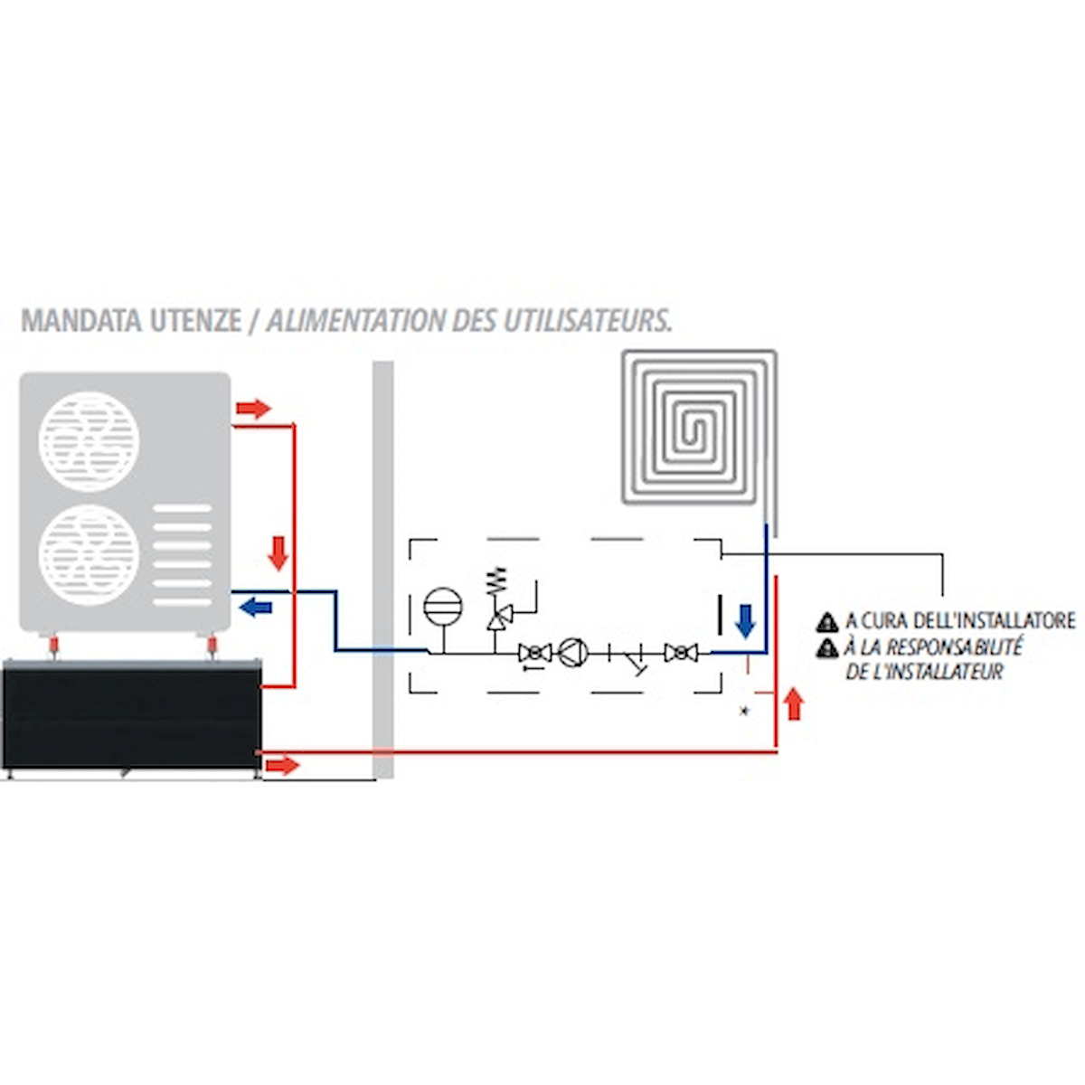 It is designed for outdoor installation. It serves as a base for the heat pump (max. 150 kg). These features make it unique and exclusive, definitively eliminating the need for additional indoor space. It comes pre-equipped with the anti-vibration kit for the heat pump. It is prepared for the installation of the expansion tank using the special kit supplied separately.