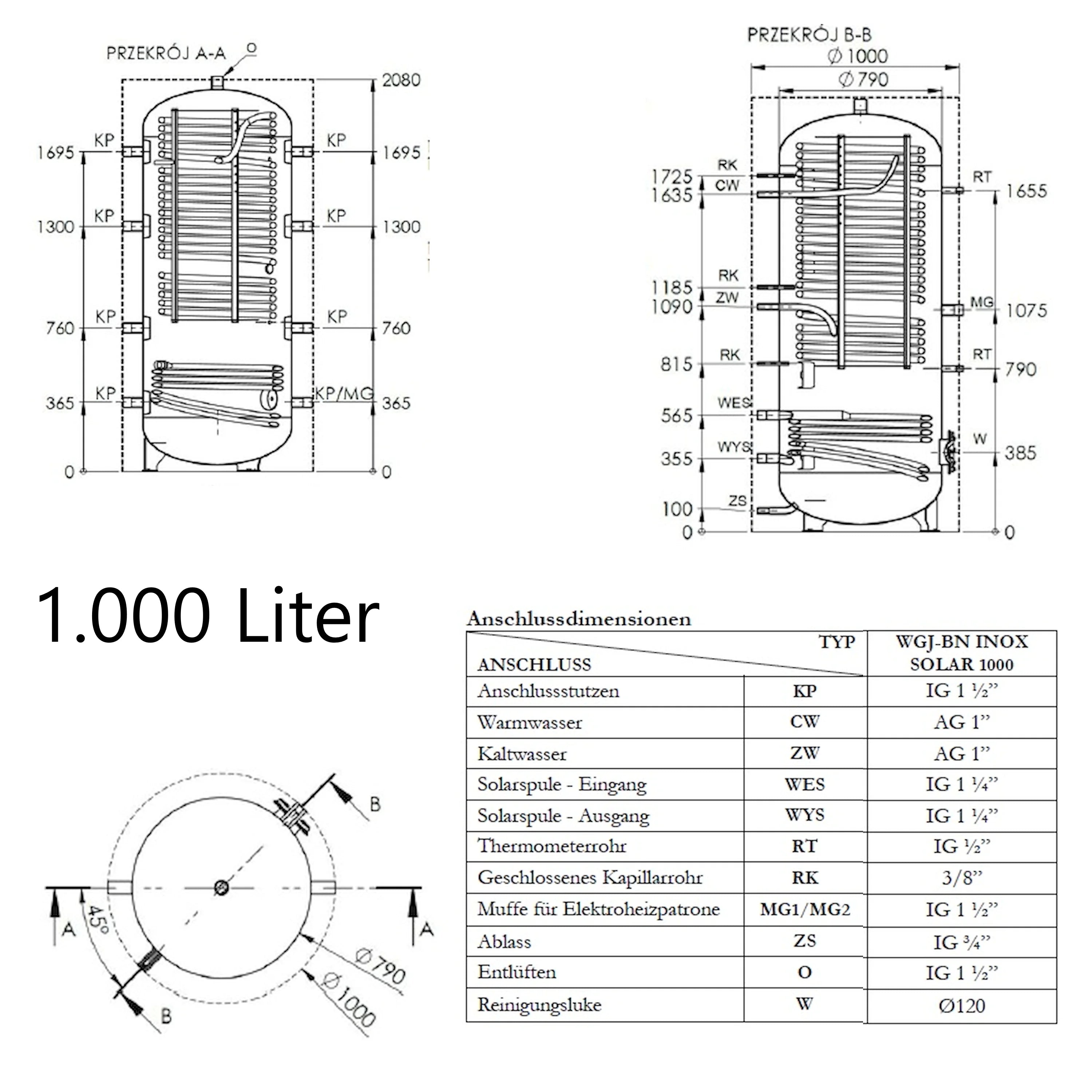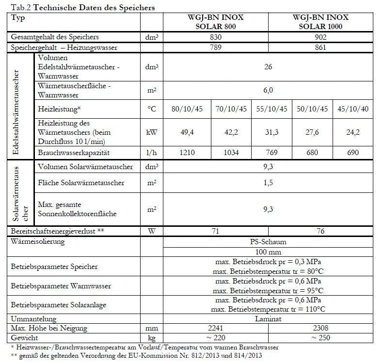 WGJ-BN INOX SOLAR on kombineeritud puhverpaak vee ja sooja tarbevee soojendamiseks, millel on integreeritud roostevabast terasest küttespiraal soojusvahetina. See on loodud integreerimiseks keskküttesüsteemidesse, kus on katlad, soojuspumbad või päikesesoojuse kasutamine, ning võimaldab nii kütteenergia salvestamist kui ka joogivee pidevat soojendamist.