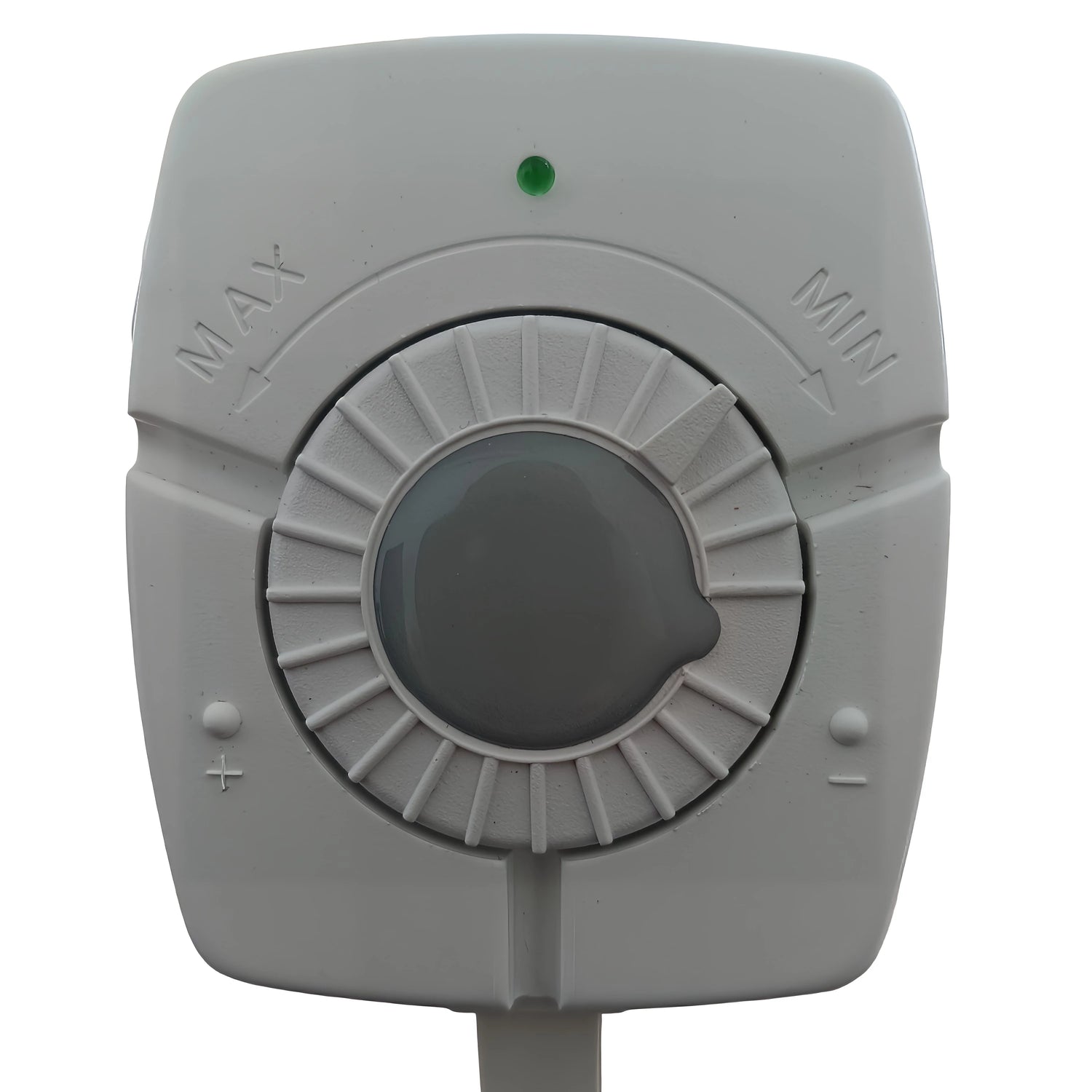 Element grzejny wyposażony jest w zewnętrzny regulator umożliwiający bezstopniową regulację temperatury docelowej oraz praktyczną wtyczkę Schuko.