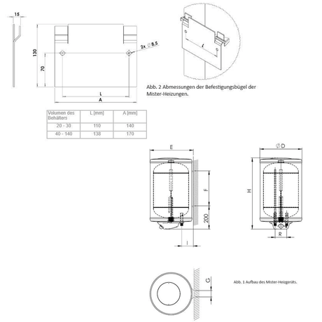 Wiszące magazynowanie Elektro 20 - 140 litrów domowej pamięci wody