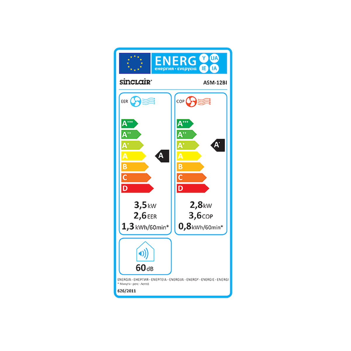 - Клас на енергийна ефективност охлаждане/отопление: A/A+