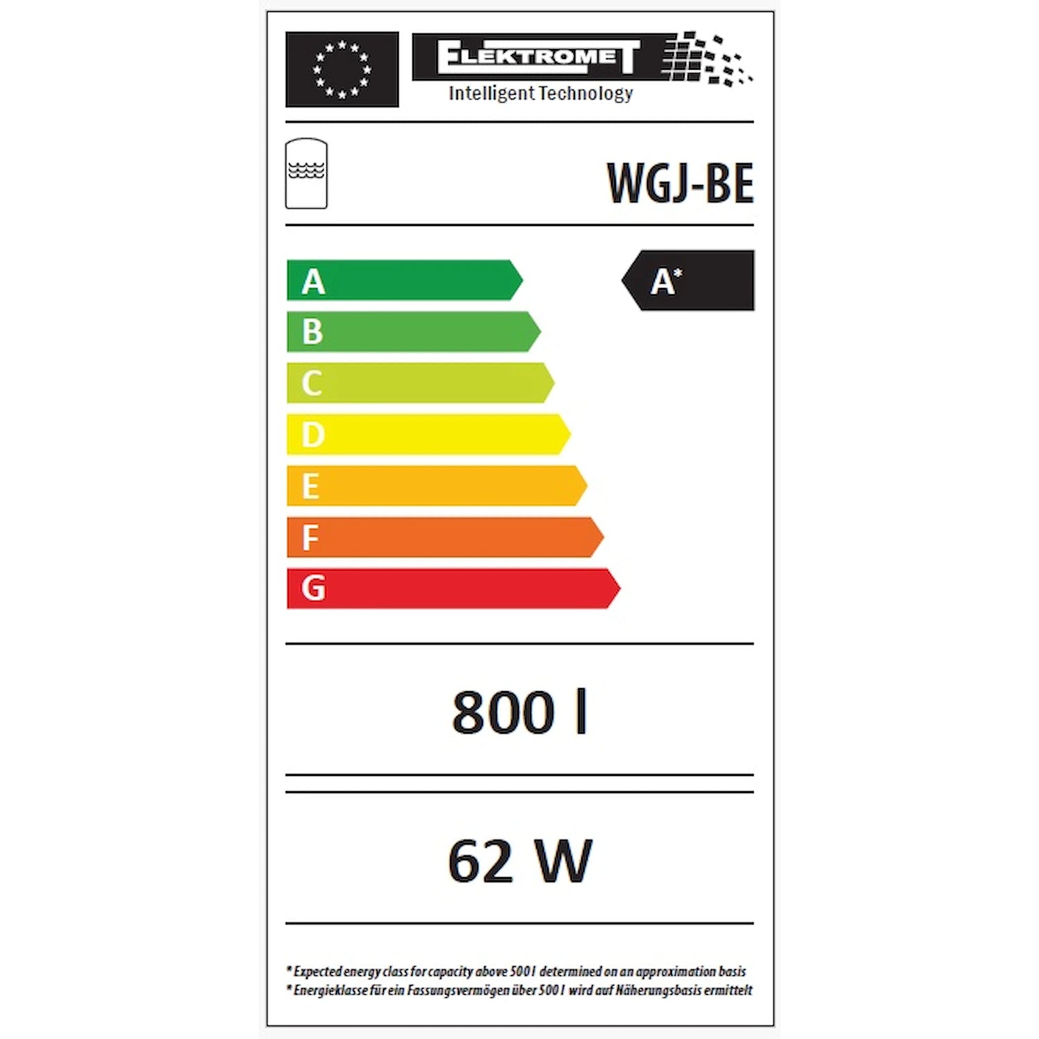 WGJ-BE 800: Lagringsvolym ca 710 l, stilleståndsförluster ca 62 W, ​​vikt ~143 kg. WGJ-BE 1000: Lagringsvolym ca 830 l, stilleståndsförluster ca 71 W, vikt ~160 kg. Maximalt driftstryck: 0,3 MPa; Maximal driftstemperatur: 80 °C.